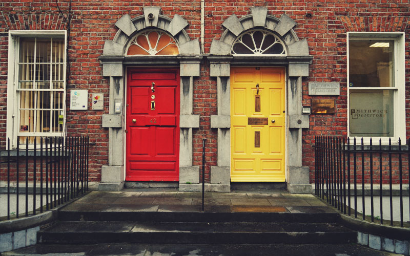 una curiosidad sobre irlanda muy interesante es que casi todas las casas de Irlanda tienen puertas de colores y hay varias teorías que explican esta costumbre. La que más nos gusta es que los hombres irlandeses solían volver a casa muy borrachos y las puertas de colores facilitaban identificar cuál era su casa.